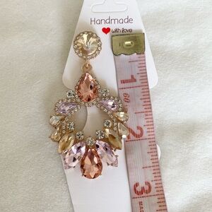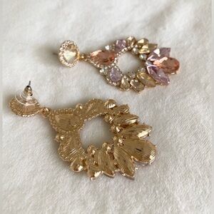 Gold Pink Chandelier Multi Color Crystal Rhinestone Statement Drop Earrings NWT