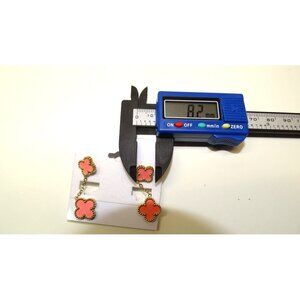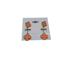 These earrings feature a stylish clover design in pink enamel, framed by a gold-tone finish. The earrings are elegant, yet versatile, suitable for various settings, enhancing any outfit with a touch of sophistication. The sturdy stud backing ensures a secure fit while the drop design adds dynamic movement.