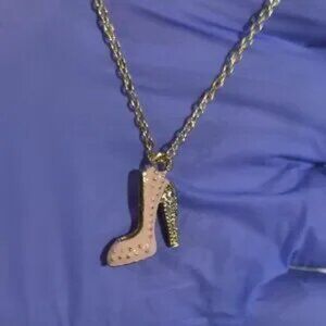 This chic gold and pink high heel stiletto rhinestone pendant necklace adds a fun, fashionable touch to any outfit. Featuring a glossy pink heel charm on a gold-tone chain, it’s perfect for trendsetters, shoe lovers, and anyone who enjoys playful statement jewelry.