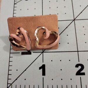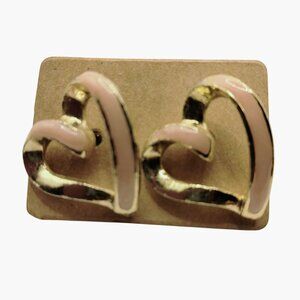 These elegant open heart stud earrings feature a gold-tone finish with a pink enamel accent. Designed for women, they add a touch of charm to any ensemble.