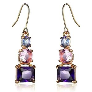 Gold Plated Amethyst Pink Zircon Blue Topaz Dangle Color Block Earrings