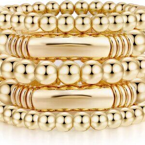 Gold Plated Bead Ball Stretch Bracelets Set for Women Gifts Jewelry
