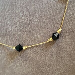 Gold Plated Black Beaded Minimalist Necklace