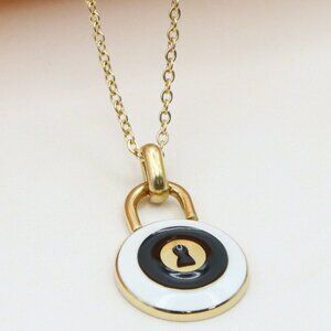 "Gold Plated Black Evil Eye Pendant Necklace, XPNL0308