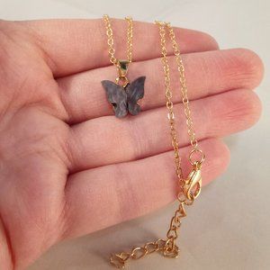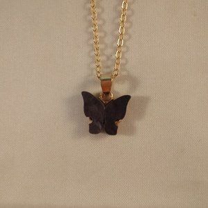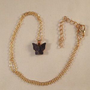 Gold Plated Black Opal Resin Butterfly Pendant Chain Necklace 18" + 2" ext.