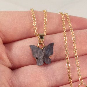 Beautifully designed black opal resin acrylic butterfly pendant chain necklace. Top quality, high polished shine, brand new, never been worn. Lead, nickel free.
