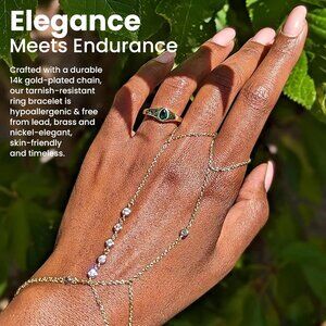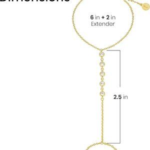 Features: Beautifully minimalist hand jewelry featuring five cubic zirconia stones set in a 14k gold-plated sterling silver chain. The sleek cable chain with lobster claw clasp ensures a secure, adjustable fit that feels comfortable all day. Perfect as a subtle statement piece for any occasion, from everyday wear to special events.