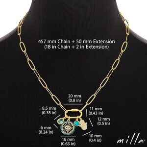 Gold Plated Charm Necklace 18in Paperclip Chain Evil Eye Hamsa Gift