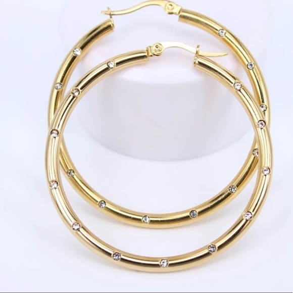 Gold Plated Crystal Hoop 1.5" Earrings