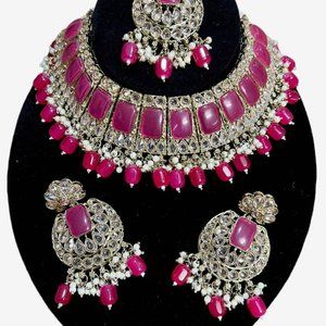 Gold Plated Crystal Stone & Beads Choker Necklace Set
