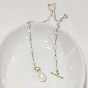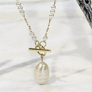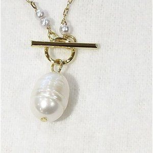 Gold Plated Toggle Front Clasp Real Cultured Freshwater Baroque Pearl Pendant Necklace 16 inches