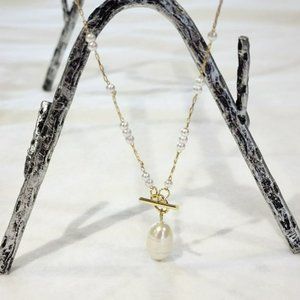 Gold Plated Cultured Baroque Freshwater Pearl Pendant Necklace Toggle Clasp