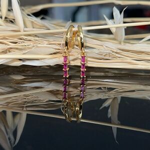 These beautiful earrings are stamped 925 sterling silver; and are gold plated. The stone color is a beautiful ruby pink shade. They are hypoallergenic, nickel-free and waterproof, no need to worry about irritation. The inner ear part of the earring is 18k gold plated. The stones are AAA cubic zirconia, so best believe they are shiny and durable. They can be worn on the earlobe or be used for any cartilage piercings. Good for everyday use and perfect for any occasion gift. Or even the urge to treat yourself, you deserve it. All earring pairs come with a dust bag so that you can take them on the go or use them as a gift for a loved one.