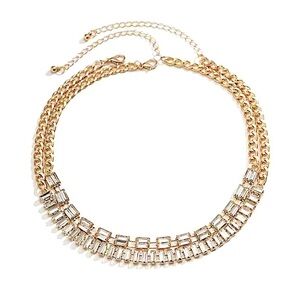 Gold Plated Diamond Baguette Multilayer Choker Necklace