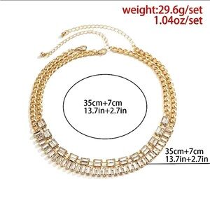 Gold plated 18k Diamond and baguette Diamond multilayer choker necklace measures 15”—18” adjustable