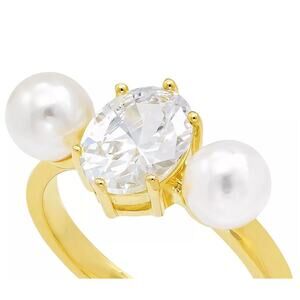 Gold Plated Double Faux Pearl CZ Ring (Size 5)Stylish Women's Fashion Trendy NWT