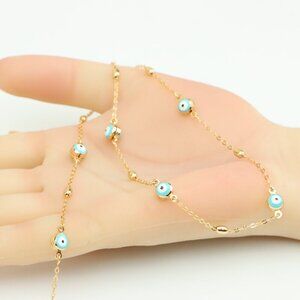 "Gold Plated Evil Eye Beaded Necklace Adjustable Chain, XPNL0303