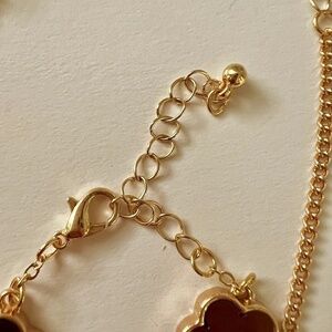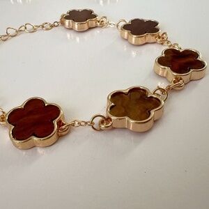 Gold Plated Flower clover Bracelet Stainless Steel Womens jewelry Brown NWT