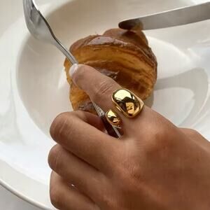 Gold plated, stainless steel versatile handmade creative design ring. You will love this eye catching, gorgeous statement piece for years to come.