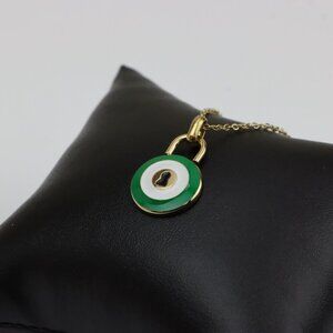 "Gold Plated Green Evil Eye Pendant Necklace, XPNL0306