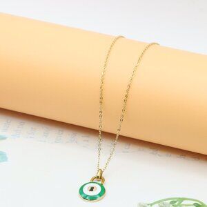 Trendy and meaningful necklace featuring a green evil eye charm for added style and protection.