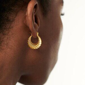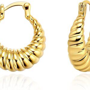 Features: These dainty hoops are a playful twist on classic jewelry, featuring a croissant-inspired design with a polished, high-shine finish. Lightweight and comfortable, they have a secure hinged closure and a 14K gold plating that’s built to last without tarnishing. Perfect for everyday wear or adding a touch of sparkle to any outfit.