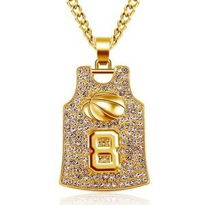 Gold Plated Iced Out #8 Kobe Bryant Los Angeles Lakers Jersey Pendant Necklace