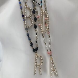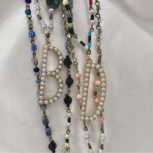 Gold Plated Initial Pendants on Beaded Necklaces. Letters are 14K gold plated with faux pearl inlays. I only have B, R, A, and D left. If your name is Brad, I can give a discount lol! The price is for each necklace. Message me what you’re interested in and I can reserve a listing for you. “A” necklace is 39” total. “R” Necklace is 38” total . B necklace is 30” total. D is 31”. If you want a specific initial on one of the other chains, I can change it out for you.