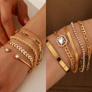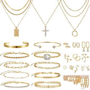 Features: This comprehensive jewelry set includes layered necklaces, bracelets, rings, and earrings, all in a shiny gold finish. Made of high-quality alloy with KC gold plating, it's hypoallergenic and durable—perfect for dressing up or down. The mix of styles makes styling effortless, whether you're heading to a party, work, or a special occasion.