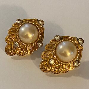 Beautiful Vintage KJL Gold Plated Sapphire Glass Domed Cabochon Clip-on Earrings