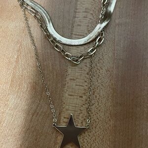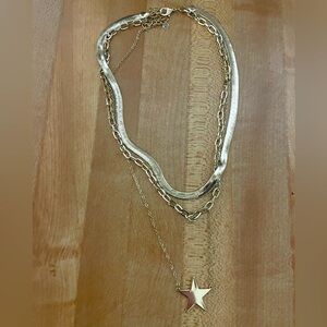 Elegant gold layered necklace featuring a charming star pendant. Perfect for adding a touch of sophistication to any outfit.