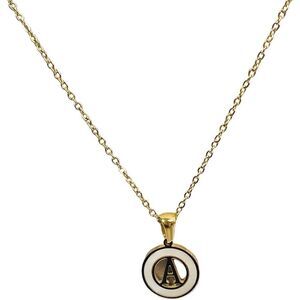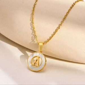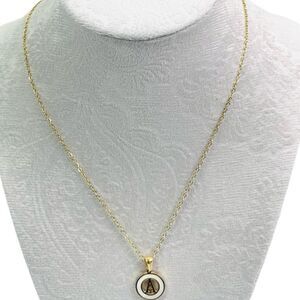 18K Gold Letter A Hollow Out White Shell Pendant Necklace
