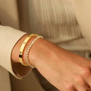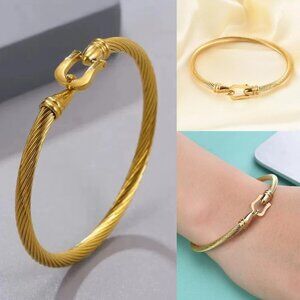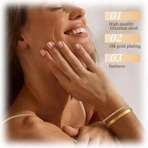 Features: This set includes three stylish bracelets made from titanium steel plated with 18k gold. They feature unique designs — a diamond-spliced bracelet with high-quality artificial diamonds, a horseshoe buckle cable chain, and a zircon bracelet for a layered, luxe look. Great for everyday glam, special occasions, or gifting.