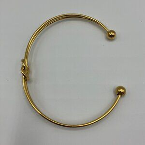 If you love a narrow gold cuff bracelet, this is perfect for you! Love knot center with two layers of gold plated bracelet sections, joined and finished at the end with a gold ball accent. Adjustable, approximately 8”. Styling is very similar to the Stella + Dot version.