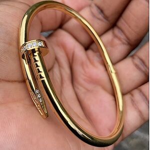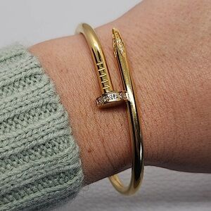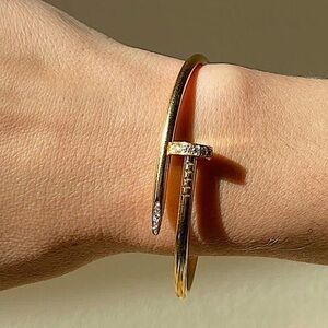 Zircon accent nail bangle bracelet Gold plated Nail bracelet