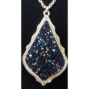 Gold Plated Necklace Featuring Glass Stone 2" Teardrop Pendant Sparkle