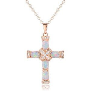 Gold Plated Opal Cross Necklace 18K Religious Pendant Jewelry Gift for Women