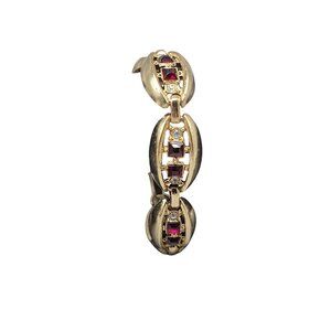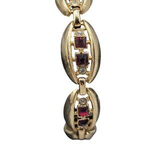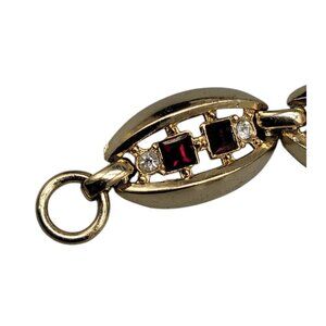 Gold Plated Oval Link Rhinestone Tennis Bracelet Red & Clear Glass Stones SZ 7