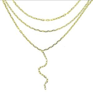 Gold plated multilayer 18K paperclip necklace. Necklace lengths adjustable
