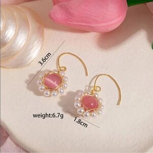 Gold Plated Pink And White Pearl Drop Dangle Earrings New in Gift Box