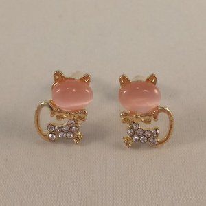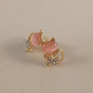 Gold Plated Pink Opal Diamond Crystal Cat Stud Earrings 1.41ctw Party Gift