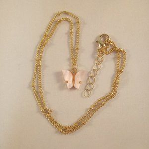 Gold Plated Pink Opal Resin Butterfly Earrings Pendant Necklace Set 18" Gift