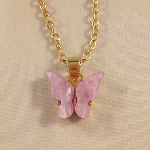 This beautiful jewelry necklace is gold plated w/a pink opal resin acrylic butterfly pendant. Brand new, never been worn. Lead and nickel free.