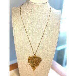 Gold Plated Real Leaf Pendant Necklace With Chain