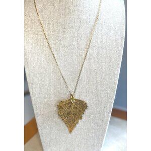 This necklace features a gold-plated real leaf pendant, showcasing intricate natural details. Its lightweight design suits both casual and formal settings.