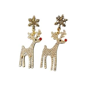 Gold Plated Rhinestone Reindeer Snowflake Dangle Earrings