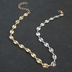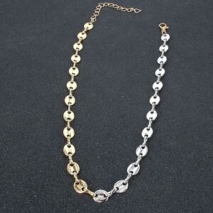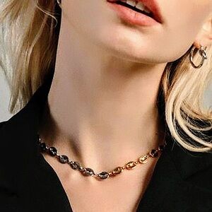 Gold plated silver two tone pig nose choker measures 16”-18”.