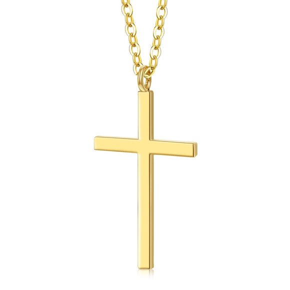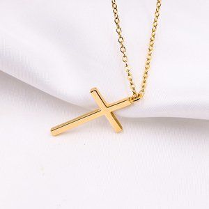 Gold Plated Simple Religious Smooth Cross Pendant Necklace Unisex
