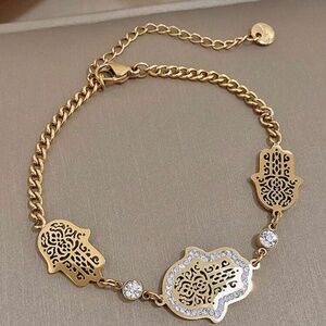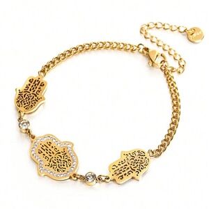 Gold Plated Stainless Steel Hamsa Charm Bracelet