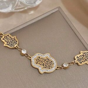 This Hamsa bracelet blends spiritual symbolism with modern elegance—crafted to radiate positivity and elevate your everyday look.